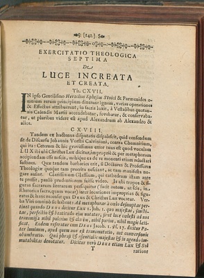 Exercitatio Theologica Decima De Luce Increata Et Creata