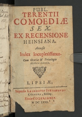 Publii Terentii Carthaginensis Afri comoediae sex : recte tandem captui juventutis accommodatae oder: Deutliche und nach dem Begriff der Jugend endlich recht eingerichtete Erklärung des Publii Terentii, eines comici ; nebst einer Vorrede von Lesung der heydnischen Auctorum ... und darzu volkommenen Register / nach Art des durch Emanuel Sincerum ... der studirenden Jugend zum Besten an das Licht gegeben