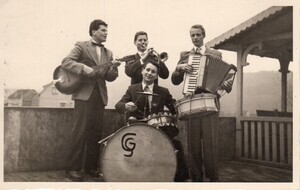 Das Scheuer Quintet mit Gitarre, Trompete, Akkordion und Trompete
