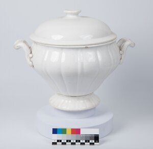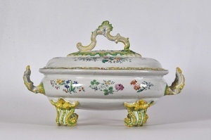 Terrine mit "deutschen Blumen" und Zitrone als Deckelknauf