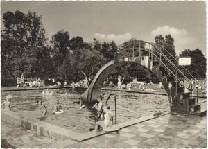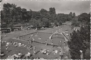 Ansichtskarte Motiv "Blick über das Kinderbecken zur Eingang des Thermalfreibades Bad Bodendorf"