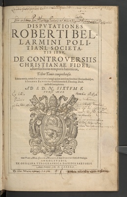 In: DISPVTATIONES ROBERTI BELLARMINI E SOCIETATE IESV, DE CONTROVERSIIS CHRISTIANAE FIDEI, ADVERSVS HVIVS TEMPORIS HAERETICOS, Tribus Tomis comprehensæ ; Band 1