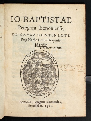 Io. Baptistae Peregrini Bononiensi De causa continente deque morbo fiente disceptatio