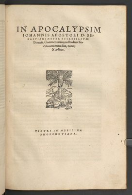 In Apocalypsim Iohannis Apostoli D. Sebastiani Meyer Ecclesiastae Bernen[sis] Commentarius, nostro huic saeculo accommodus, natus, & aeditus