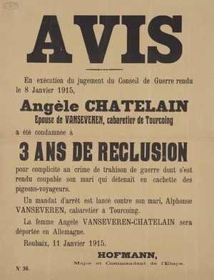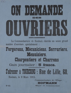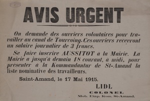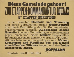 Plakat in Roubaix und Tourcoing, Frankreich, 1915