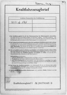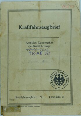 Kraftfahrzeugbrief eines Zettelmeyer Schlepper Z 2