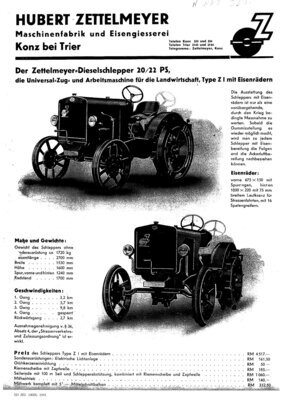 Werbeblatt für einen Zettelmeyer Diesel-Schlepper Z 1