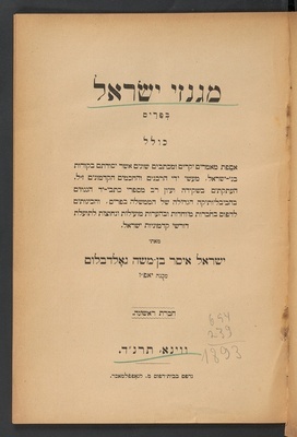 Mi-ginze Yiśraʾel be-Paris : kolel asefat maʾamarim yeḳarim ṿe-mikhtavim shonim asher yesodatam be-ḳorot bene-Yiśraʾel ... / me-eti Yiśraʾel Iser Ben-Mosheh Goldblum