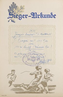 Siegerurkunde: 100m-Lauf 1958 (Herbert Junges) 2
