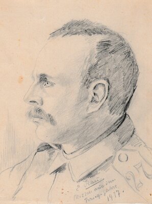 Portraitzeichnung Matthias Leisen in Uniform 1917