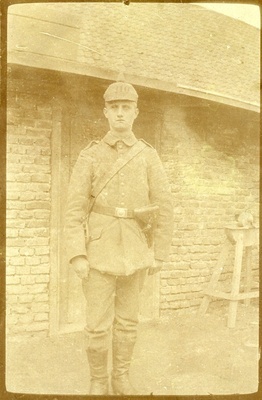 Foto eines Landwehrsoldaten in feldgrauer Uniform
