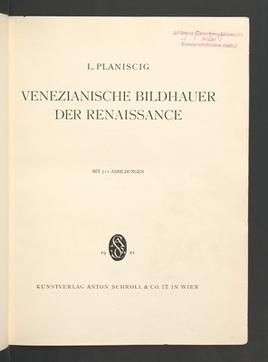 Venezianische Bildhauer der Renaissance : mit 711 Abbildungen / L. Planiscig