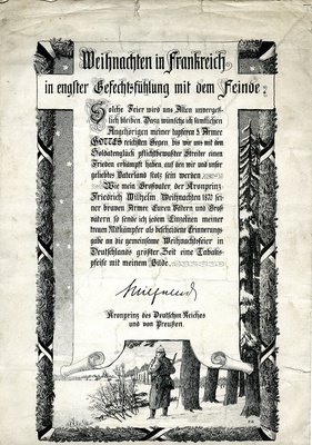 Erinnerungsblatt "Weihnachten in Frankreich" in Verbindung mit einer Reservistenpfeife