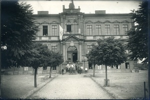 Fotografie "Vor dem Lazarettgebäude, Vereinslazarett Kindsbach"
