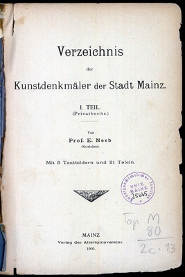 Verzeichnis der Kunstdenkmäler der Stadt Mainz / E. Neeb