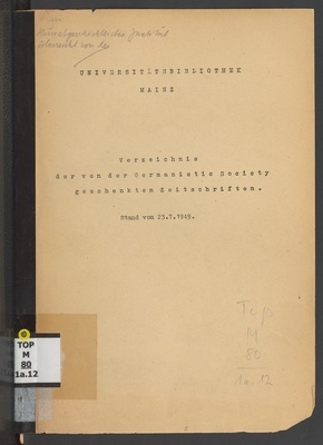 Verzeichnis der von der Germanistic Society geschenkten Zeitschriften