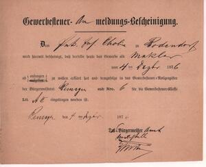 Gewerbesteuer-Anmeldungs-Bescheinigung der Stadt Remagen
