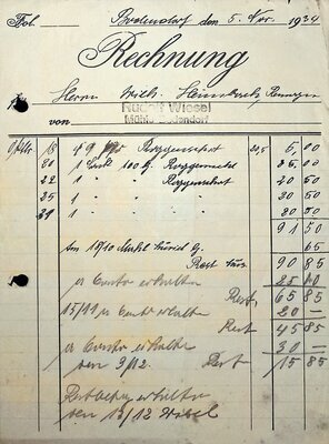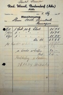 Rechnung Mühle Bodendorf-Ahr von Rudolf Wiesel