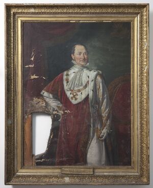Zerstörtes Repräsentationsporträt des Königs Max Joseph I von Bayern nach einer Vorlage von Moritz von Kellerhoven