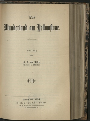 Das Wunderland am Yellowstone : Vortrag / von K. A. von Zittel