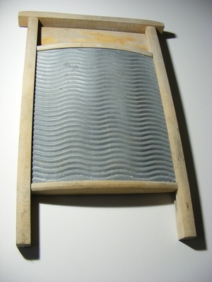 Wäschezubehör: Waschbütte, Waschbrett, Wäschezange, Wäscherührer, Wäscheklammern, Wäschestampfer