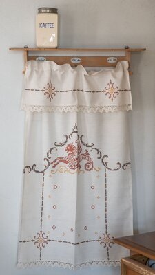 Wandkonsole mit Kaffeedose und besticktem Deckchen