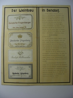 Text- und Abbildungstafel "Der Weinbau in Bendorf" mit Weinetiketten