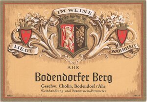 Weinflaschenetikett "Bodendorfer Berg" der Geschwister Cholin, Bodendorf/Ahr