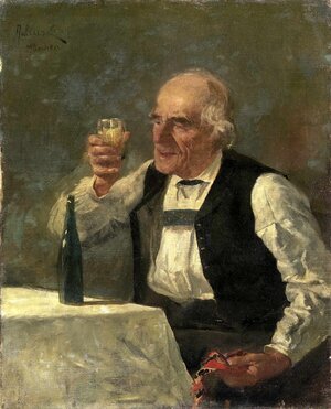 Alter Pfälzer Winzer beim Weintrinken