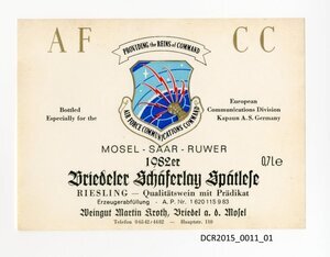 Personalisiertes Weinflaschenetikett für Air Force Communications Command