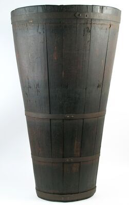"Knabe neben Weinbütte"