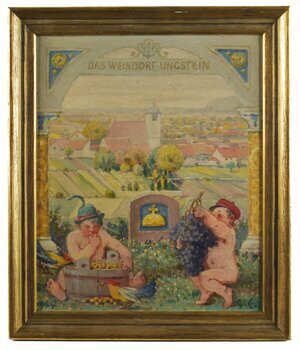 Ansicht von Ungstein mit traubennaschenden Kindern