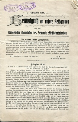 Dekanatsbrief Kirchheimbolanden, Pfingsten 1916: "Heimatgruß an unsere Feldgrauen"