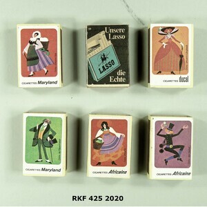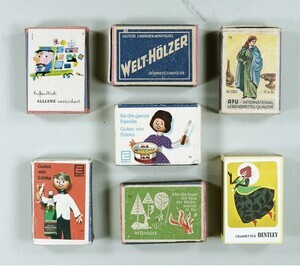 Streichholzschachteln mit Werbung für Zigaretten