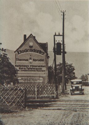 Werbung für den Bodendorfer Thermal-Sprudel auf einem Haus