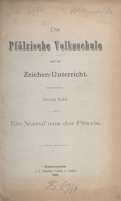 Die Pfälzische Volksschule und ihr Zeichen-Unterricht : Bona fide. Ein Notruf aus der Praxis