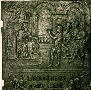 Stirnplatte; Joseph vor dem Pharao (Genesis 41, 14-36)