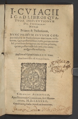 J. Cviacii Ad Libros Qvatuor Institutionvm Dn. Iustiniani Notae Priores & Posteriores : nunc primam in unum corpus redactae ...