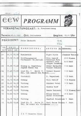 Sitzungsablauf Carneval Club Weisenau 23.02.1992 - 9. Fremdensitzung
