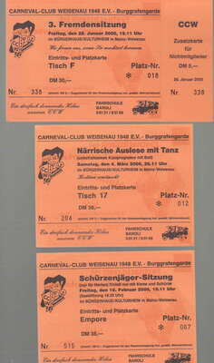 Eintrittskarte Carneval Club Weisenau - Burggrafengarde - 2000 - verschiedene Sitzungen