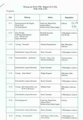 Sitzungsablauf Carneval Club Weisenau 03.01.1998 - "Wir für uns"