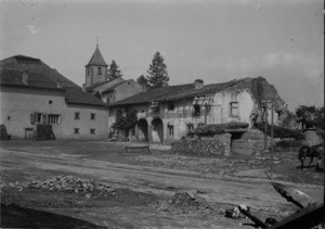 Feldpostkarte mit Bildmotiv des zerstörten Innenhofes des Gutes Cour de Soupir