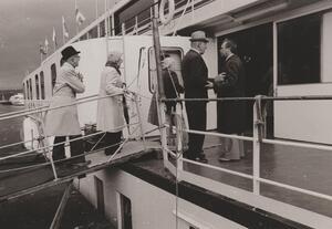 Seniorenfahrt auf dem Rhein mit Bürgermeister Trennheuser, 1980er Jahre