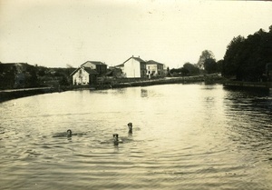 Hochwasser am Rheinhafen Bendorf, amerikanisches Militärdepot 1920