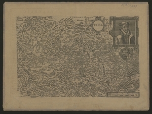 Mit Wappen und Porträt des Erzbischofs Johann von Schönberg (Einblattdruck, ab 1592 in Quad's Atlas Europae, totius orbis terrarum partis praestantissimae, universalis et particularis descriptio)