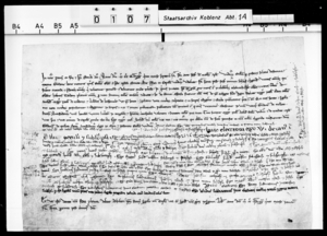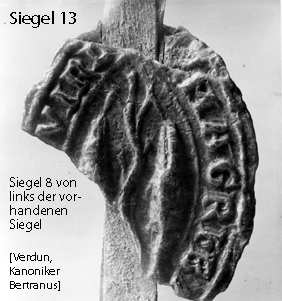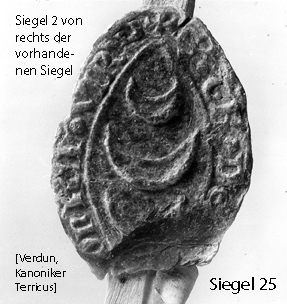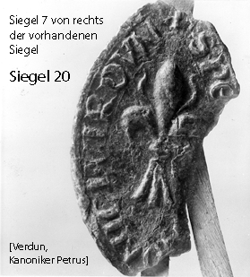 Beurkundung der Wahl des Nachfolgers für den am 18. September 1245 gestorbenen Bf. Wido von Verdun. Das Domkapitel wählte am 3. November 1245 in geheimer Abstimmung ("per viam scrutinii") einstimmig den Wido von Mello ("Melloto"), Dekan in Auxerre ("Autissiodorensis"), zum Bischof von Verdun. Alle 48 Wähler unterschreiben eigenhändig, hinter das Siegel des Domkapitels hängt jeder sein Siegel. Datum: "1245 mense Januarii feria quarta proxima post circumcisionis Domini"