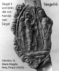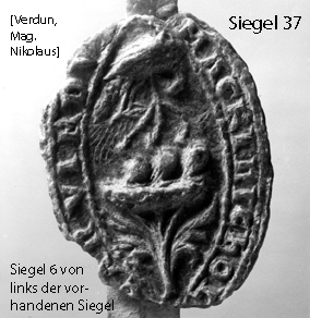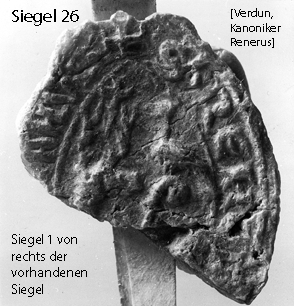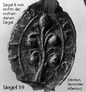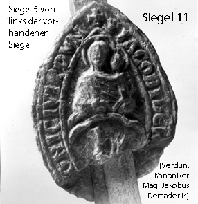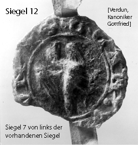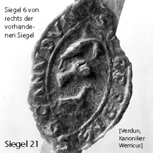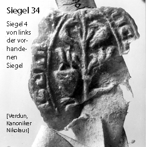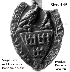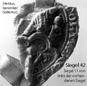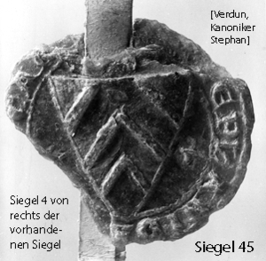 Beurkundung der Wahl des Nachfolgers für den am 18. September 1245 gestorbenen Bf. Wido von Verdun. Das Domkapitel wählte am 3. November 1245 in geheimer Abstimmung ("per viam scrutinii") einstimmig den Wido von Mello ("Melloto"), Dekan in Auxerre ("Autissiodorensis"), zum Bischof von Verdun. Alle 48 Wähler unterschreiben eigenhändig, hinter das Siegel des Domkapitels hängt jeder sein Siegel. Datum: "1245 mense Januarii feria quarta proxima post circumcisionis Domini"