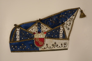 Damenjacke (Ranzengarde-Farben), langer goldfarbener Rock, Weste, Ärmelspitzen, weißer Umhang mit schwarzen Intarsien (Hermelinmuster) Prinzessinen-Kappe, Broschüre über das Prinzenpaar