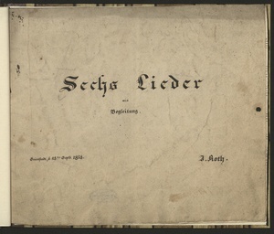 Sechs Lieder mit Begleitung. Grünstadt, d. 28ten Septb. 1828. J. Roth. [Titelblatt] (Manuskripttitel) : 6 Lieder [V, pf]
