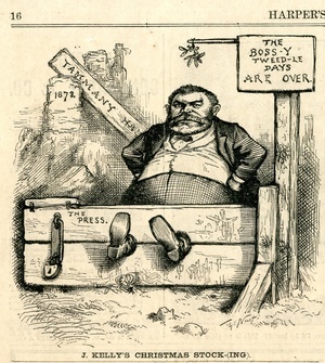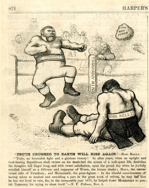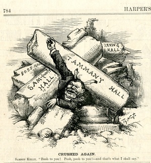 "Home rule". Kelly. "I am Boss!" : John Kelly steht als Hahn auf einem Misthaufen, der die Tammany Hall darstellt, und kräht / Th. Nast
